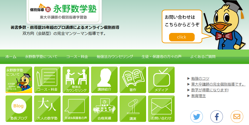 | 7 | 永野数学塾 | 数学専門・オンライン個別 | 苦手〜標準上位の立て直し | 個別での切り分け | 添削・復習導線の有無 |