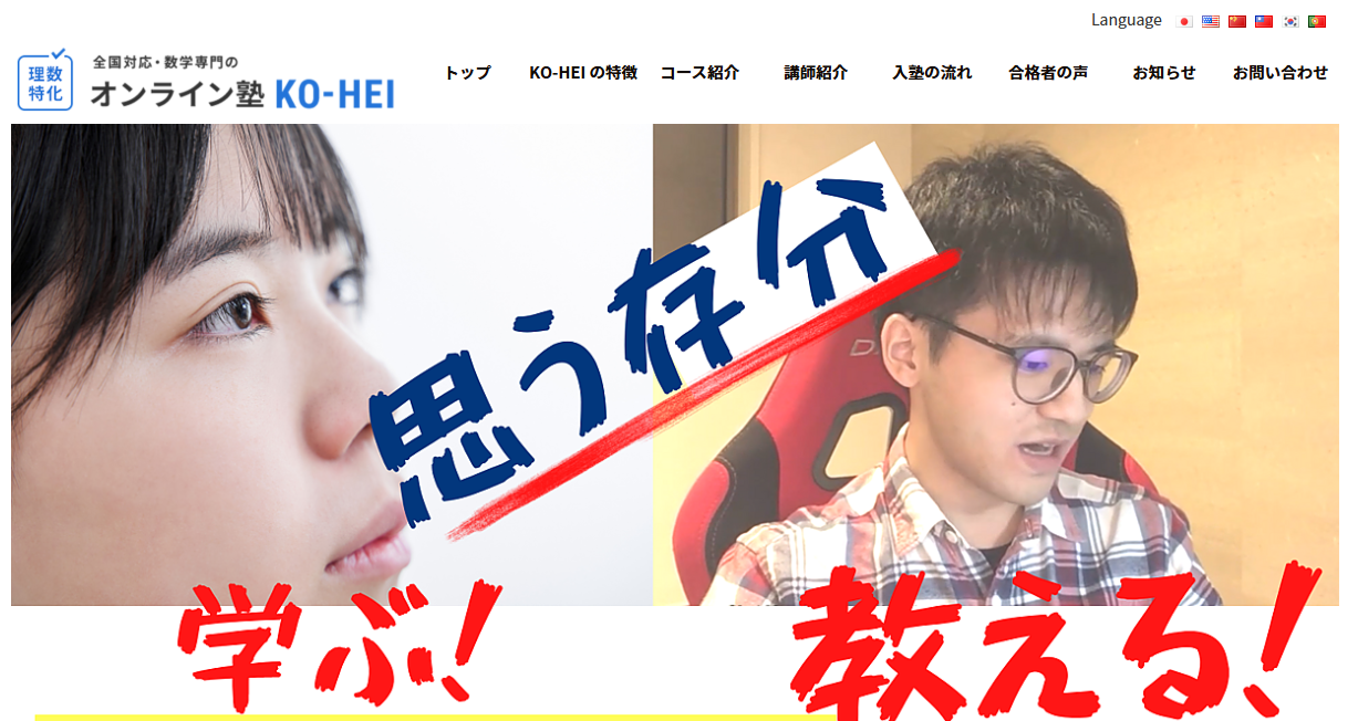 KO-HEIは、全国対応の理数系オンライン個別指導塾として案内されています。オンラインなので全国どこでも受講でき、大学受験コースも用意されています。地方在住や通塾時間を削りたい人にとって、現実的な候補になりやすいタイプです。