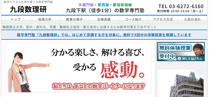 | 6 | 九段数理研 | 数学専門・校舎型 | 通塾して学習環境ごと整えたい人 | 数学特化、校舎型の集中環境 | コース設計と通いやすさ |