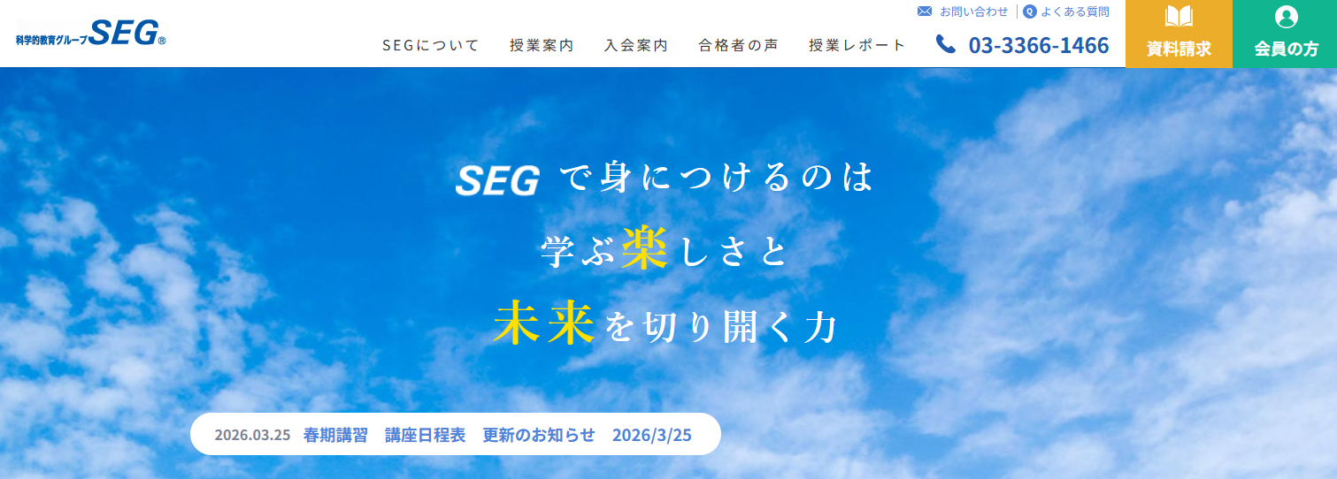 SEGは、理数教育の中でも「原理原則から理解する」色合いが強い塾です。物理のカリキュラムでも、力学からスタートし、公式主義ではなく、理論体系・考え方を身につける方向が明確です。