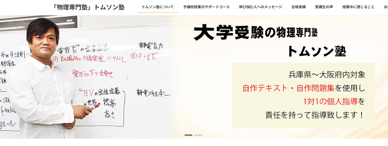 TOMASは完全1対1の個別指導で、志望校から逆算した個人別カリキュラムを組むのが特徴です。物理専門塾ではありませんが、特定大学の過去問対策や、志望校別の得点戦略を個別で詰めたい人には相性があります。