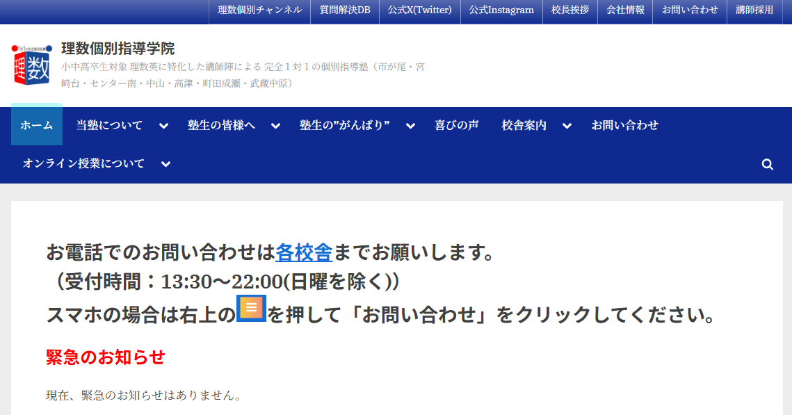 理数個別指導学院は、理数英に特化した完全1対1の個別指導塾です。オンライン授業でもノートを映しながら指導する仕組みがあり、対面に近い確認ができる点が特徴です。